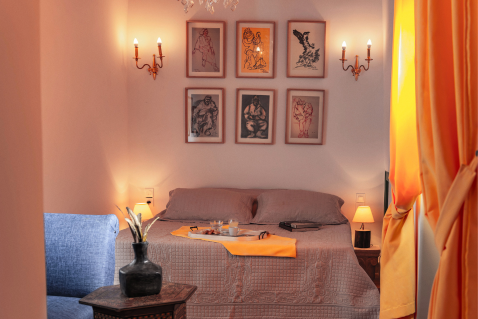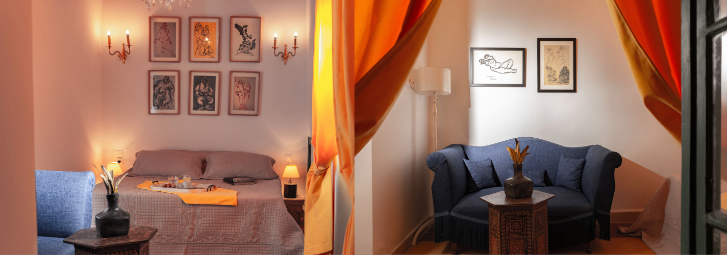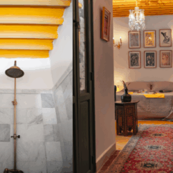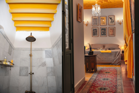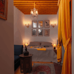 La Chambre Jaune est la plus intime de nos chambres, conçue pour accueillir 2 personnes. Son lit king-size et sa salle de bain privative assurent un confort optimal, tandis que son mobilier cosy et ses touches de couleur apportent élégance et légèreté. Véritable cocon au cœur de la médina, elle invite à savourer la douceur et l’authenticité du lieu.