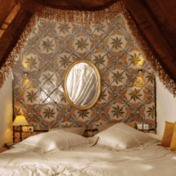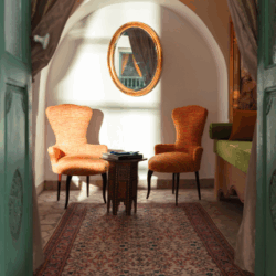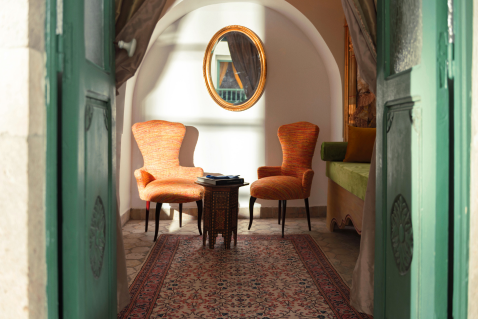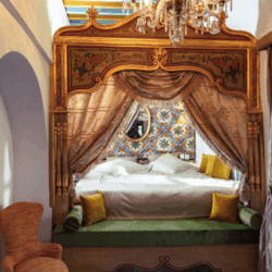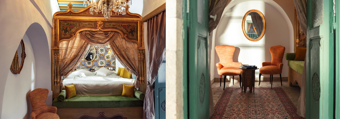 Un havre raffiné où les couleurs douces et les matières délicates invitent à la détente et à la sérénité. Chaque détail, de l’éclairage chaleureux aux accessoires soigneusement choisis, évoque le raffinement d’un palais au cœur de la médina. Conçue pour 2 personnes, la Chambre Sophie dispose d’un lit king-size et d’une salle de bain privative, alliant confort moderne et élégance traditionnelle.